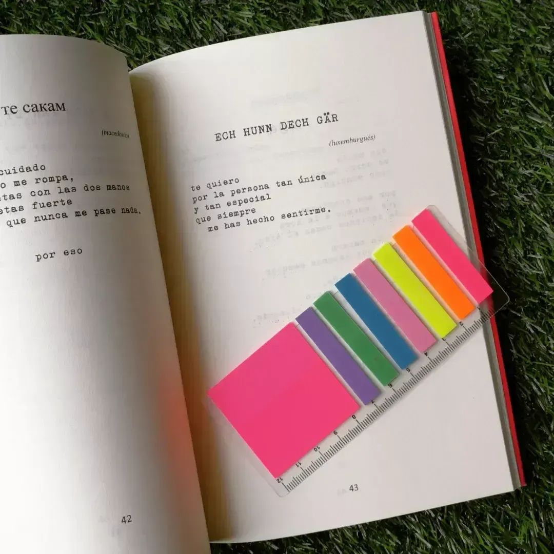 hay veces en las que queremos decirle a alguien todo lo que le queremos pero no encontramos ni la forma, ni el lugar, ni el momento. solemos ser montañas de inseguridades y nervios,a la misma vez que tenemos la cabeza llena de cosas bonitas y la tripa repleta de hormigueos.se le puede decir “te quie...